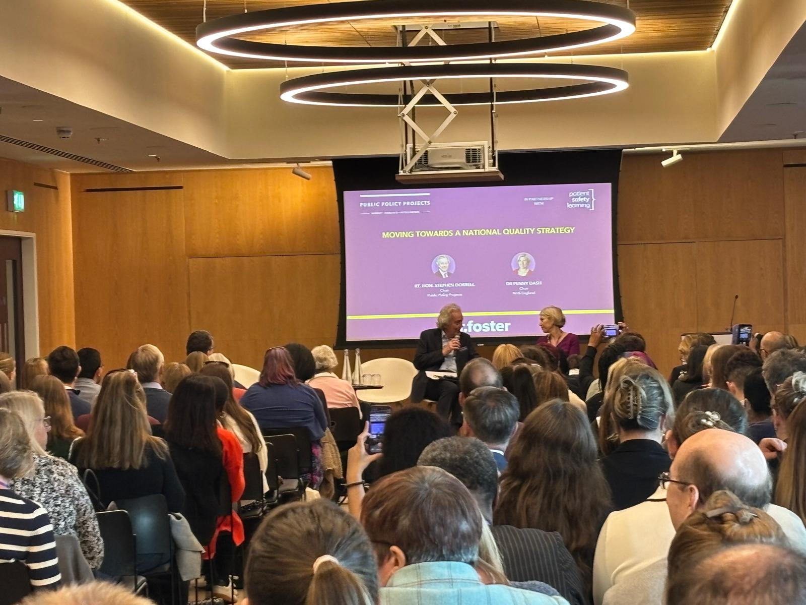 The programme included keynote contributions from Penny Dash (Chief Executive, NHS England) and Stephen Dorrell (Chair, Public Policy Projects), alongside reflections from Helen Hughes (Chief Executive, Patient Safety Learning) on current and emerging patient safety challenges.